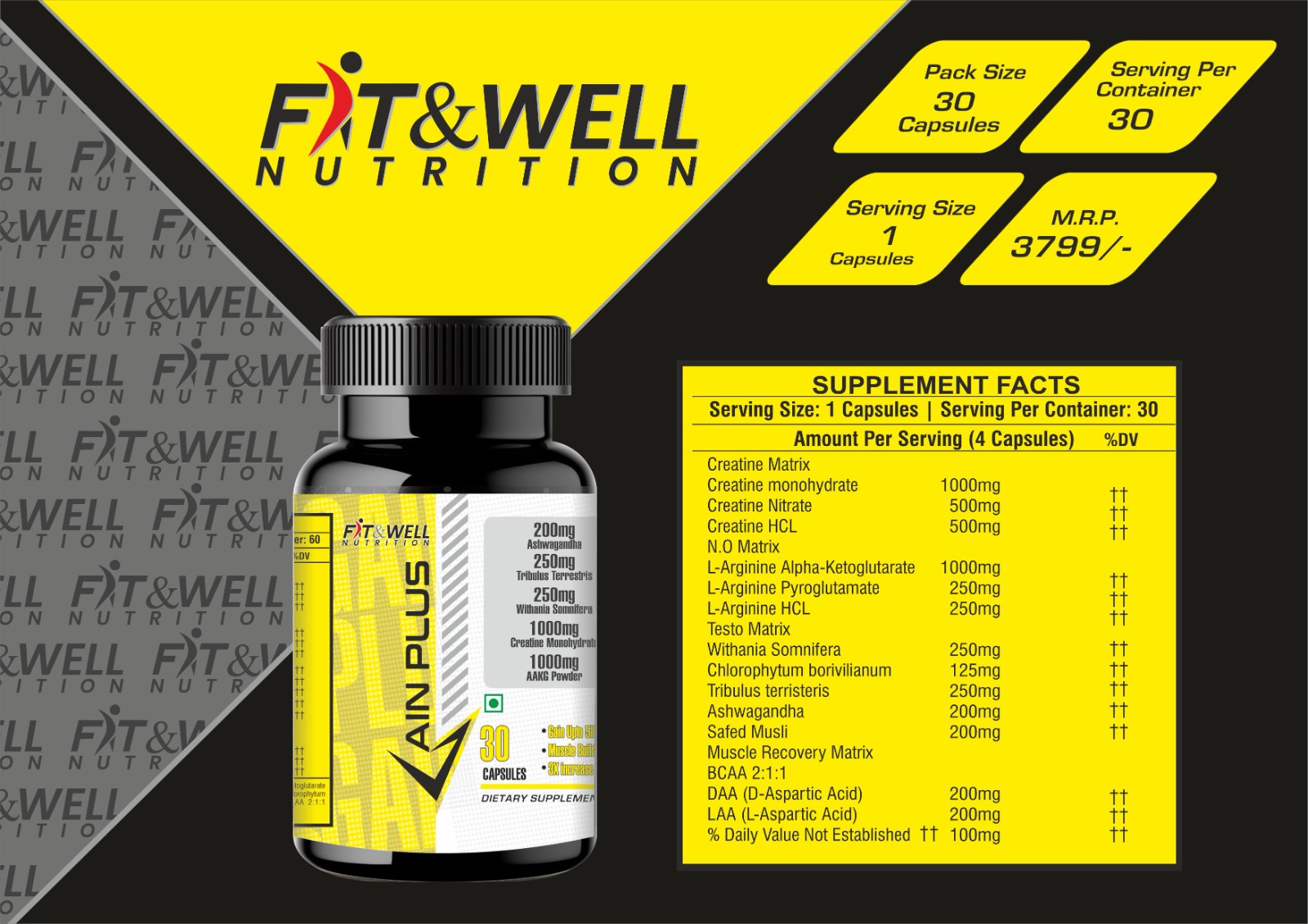 Gain Plus is a high-quality dietary supplement designed to support your fitness goals by providing essential nutrients to enhance energy, muscle growth, and overall performance. Each capsule is packed with a potent blend of ingredients to help you gain lean muscle mass and improve strength. This product is ideal for individuals looking to supplement their diet and maximize their workout results.